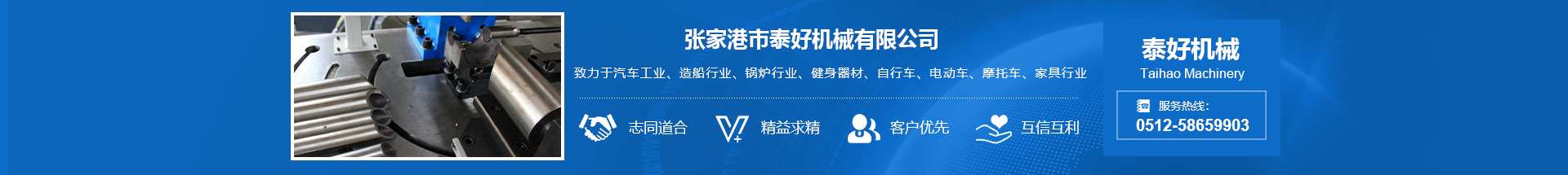 公司致力于汽車工業、造船行業、鍋爐行業、健身器材、自行車、電動車、摩托車、家具行業等生產企業的設備需求,在延續臺灣技術的基礎上,近年來公司不斷引進國外的技術和管理方法,設計制造出金屬圓鋸機、管端成型機、單頭液壓彎管機、雙頭液壓彎管機、CNC彎管機、倒角機等系列機械。